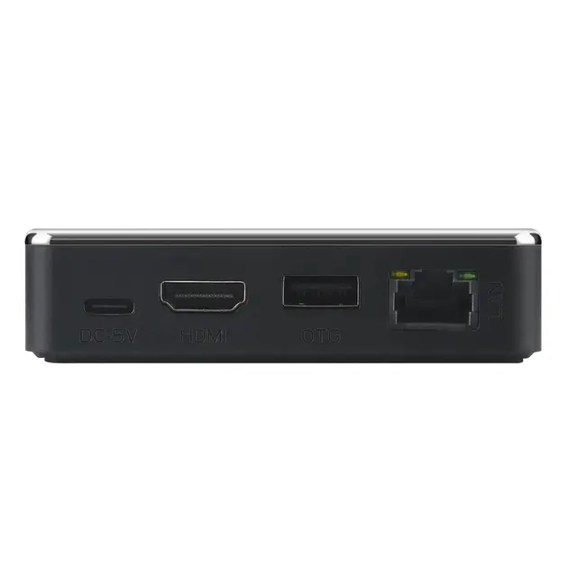 На корпусе приставки расположены такие порты и разъемы, как USB 3.0, USB 2.0, HDMI 2.0, слот для карты памяти MicroSD, а также Type-C для подключения питания. Беспроводные интерфейсы представлены двухдиапазонным Wi-Fi b/g/n/ac 2.4 / 5.8 Ггц и Bluetooth.